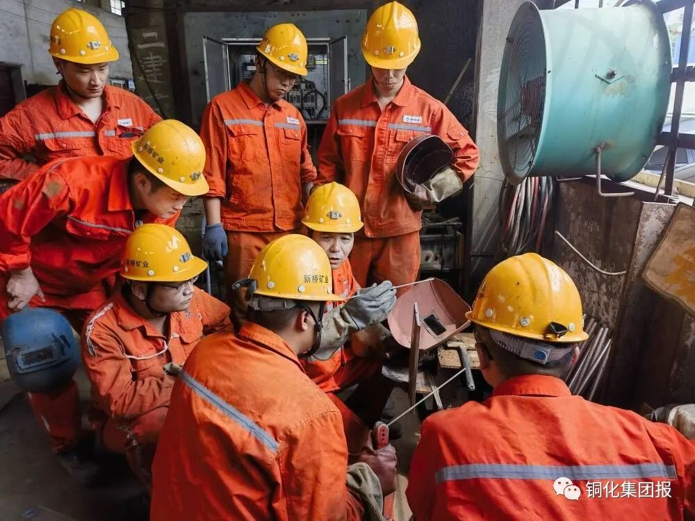 97,新橋礦業(yè)公司運(yùn)輸工區(qū)西翼維修班,銅都工匠2022年市焊工職業(yè)技能大賽第一名袁文芳同時(shí)指導(dǎo)多名電焊工進(jìn)行實(shí)際操作練習(xí)。